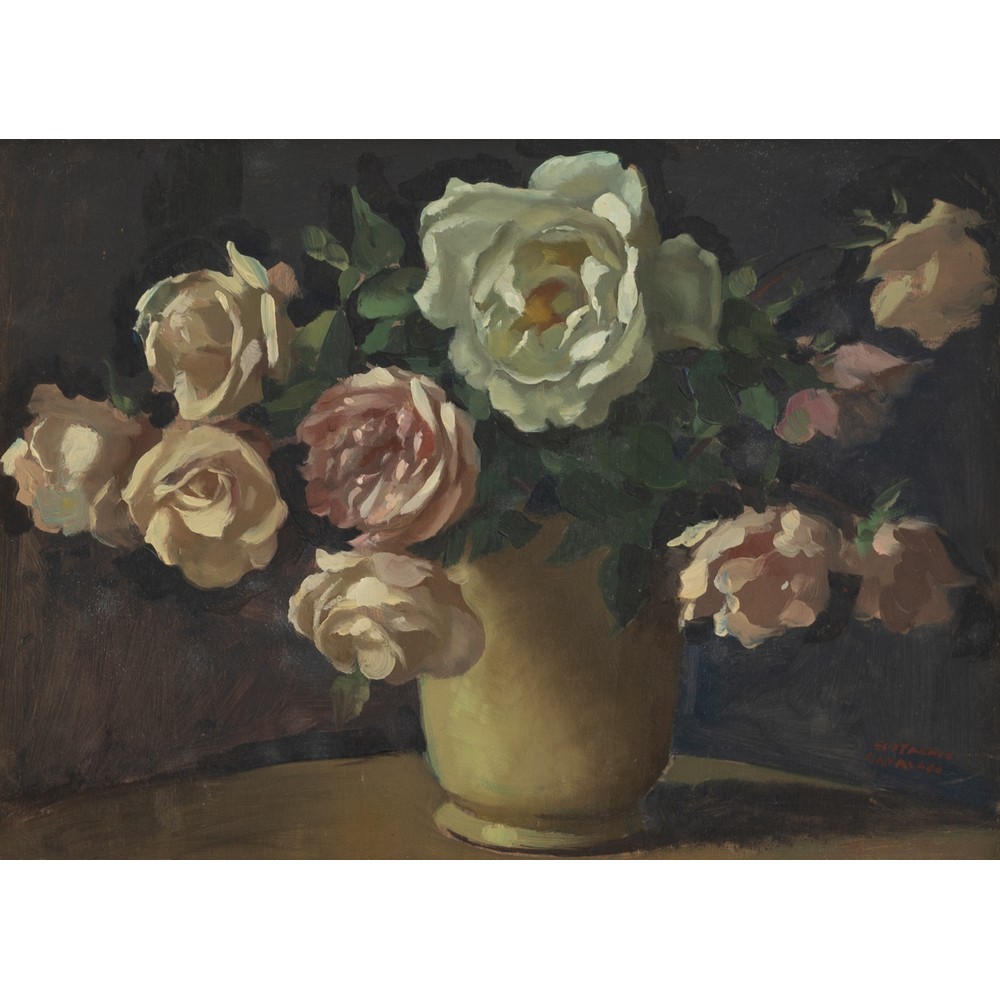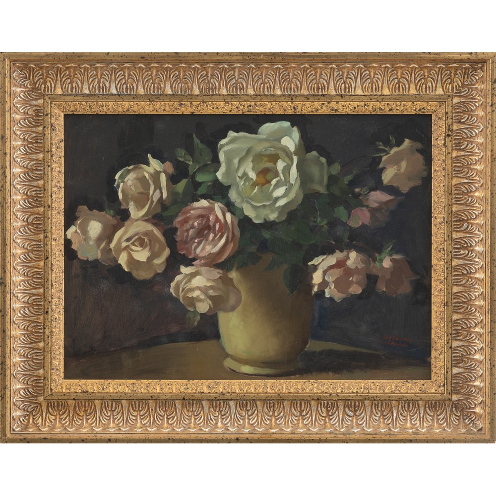 EUSTACHIO CATALANO, Vaso con rose, Olio su tavola