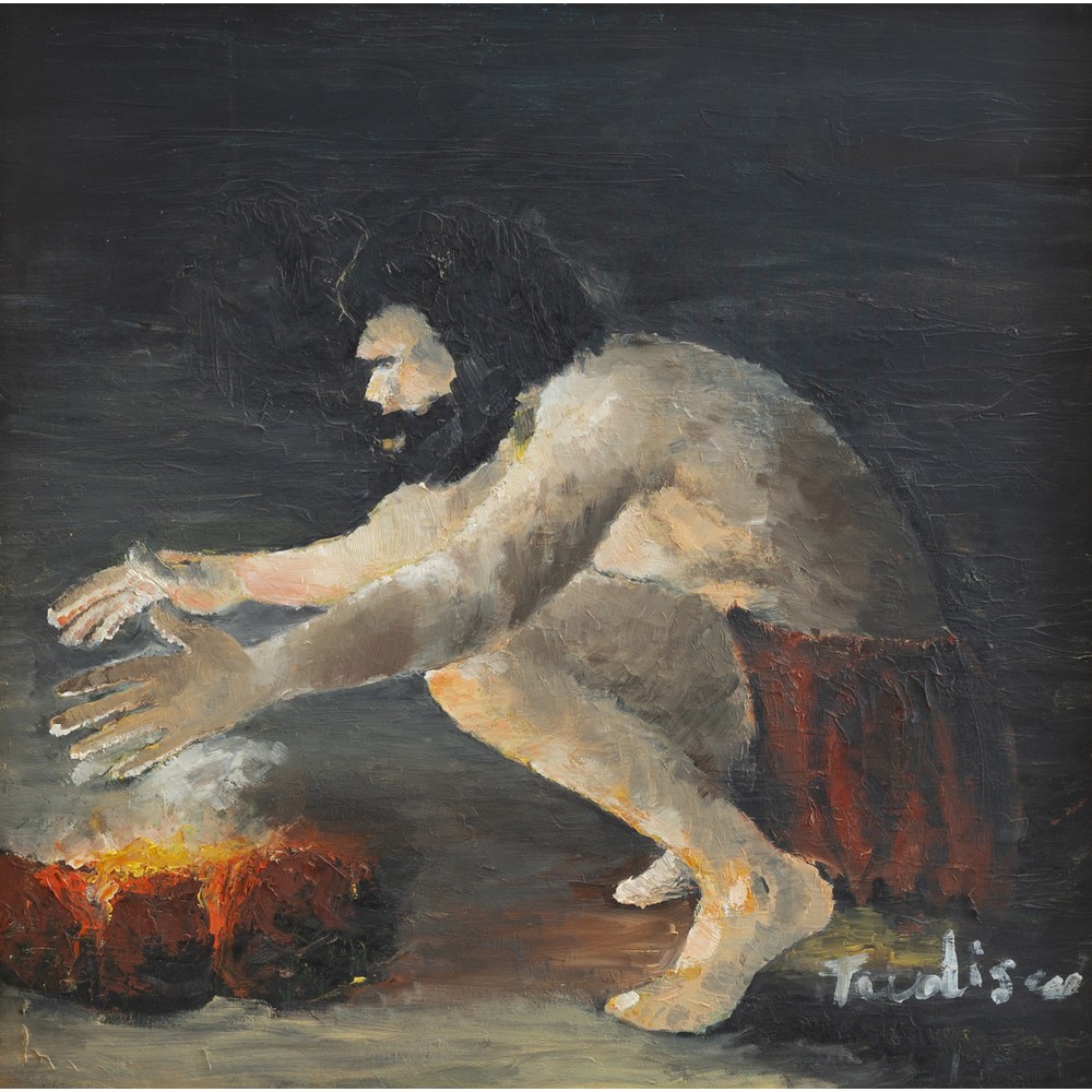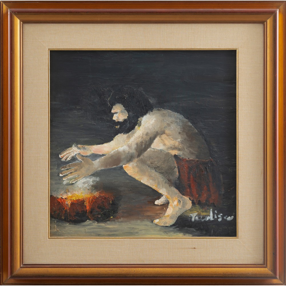 TUDISCO, Cavernicolo, Olio su cartone telato