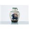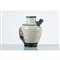 Vaso in ceramica smaltata avorio e verde, corpo ad anfora con ansa laterale e decorato con figura di cervo blu e rosso, bocca circolare. Marchio incusso alla base.