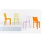 Quattro sedie modello “La Marie” in policarbonato trasparente colorato di diverso tono, arancione, giallo, viola e rosso. Segni di uso e lievi graffi. Marchio di produzione.