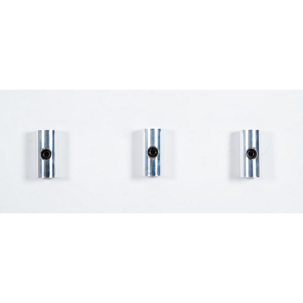 Tre lampade da parete ad una luce, struttura cilindrica cromata con portalampada centrale. Segni di uso. Marchio di produzione.