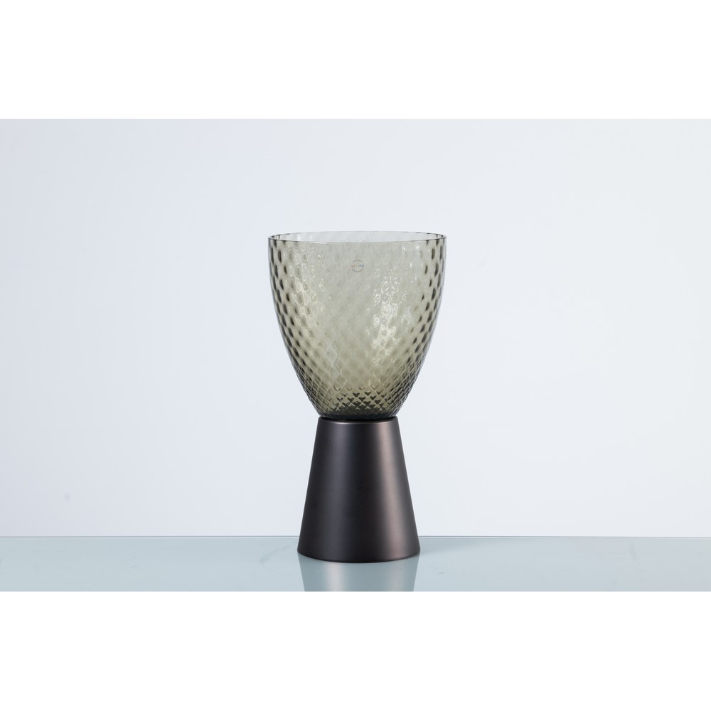 Trofeo esclusivo per “Accademia del Profumo” composto da due parti, una a coppa in vetro “Balloton” talpa e una in metallo con finitura brunita spazzolata. Etichetta di produzione e dedica a punta.