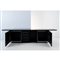 Sideboard in legno laccato lucido nero, piano rettangolare aggettante, sul fronte due ante battenti con due vani, un vano con parte a giorno e quattro cassetti, vano con due parti a giorno. Lievi segni d'uso, lievi graffi. Marchio di produzione sul fronte di un cassetto.
