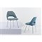 Coppia di poltrone con struttura in tubolare di acciaio cromato, seduta e spalliera con struttura in legno, imbottitura e rivestimento con tessuto originale decorato con rigature nei toni del blu. Imbottitura da rifare.