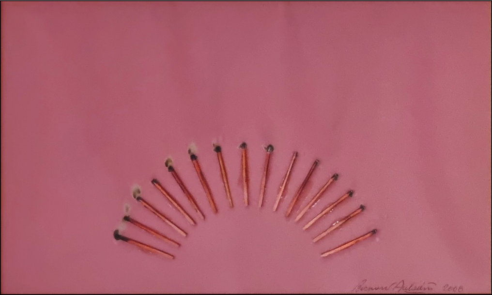 AUBERTIN BERNARD Francia 1934 - Germania 2015 "Dessin de feu" Fiammiferi bruciati su carta cm 34,5x21,5 del 2008. Firmata e datata sul fronte in basso a destra.