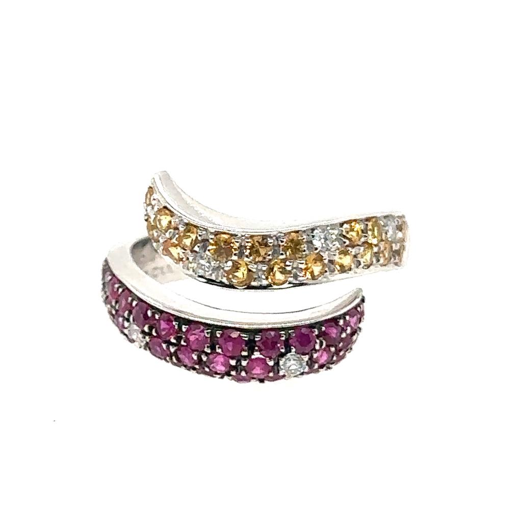 ANELLO IN ORO BIANCO 18K 6.05 GR CON DIAMANTI DA 0.12 CARATI COLORE D-F PUREZZA VS1 RUBINI 0.67 CT E ZAFFIRI 0.67 CT TAGLIA 7-9 CERTIFICATO AIG - RNG30511