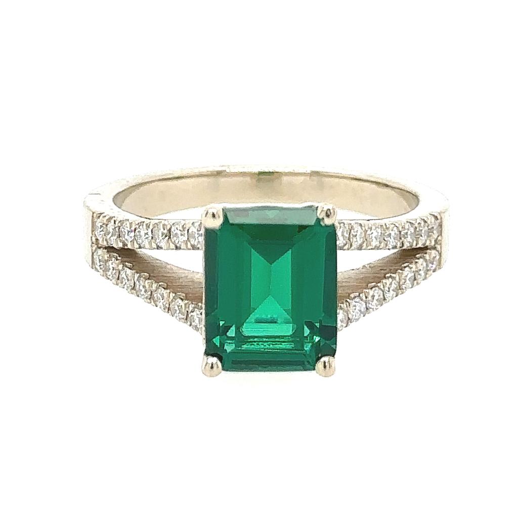 ANELLO IN ORO BIANCO 14K 4.6 GR CON SMERALDO LAB GROWN 2.00 CARATI COLORE E BRILLANTI PER 0.28 CARATI TOTALI COLORE D-F PUREZZA VS-SI