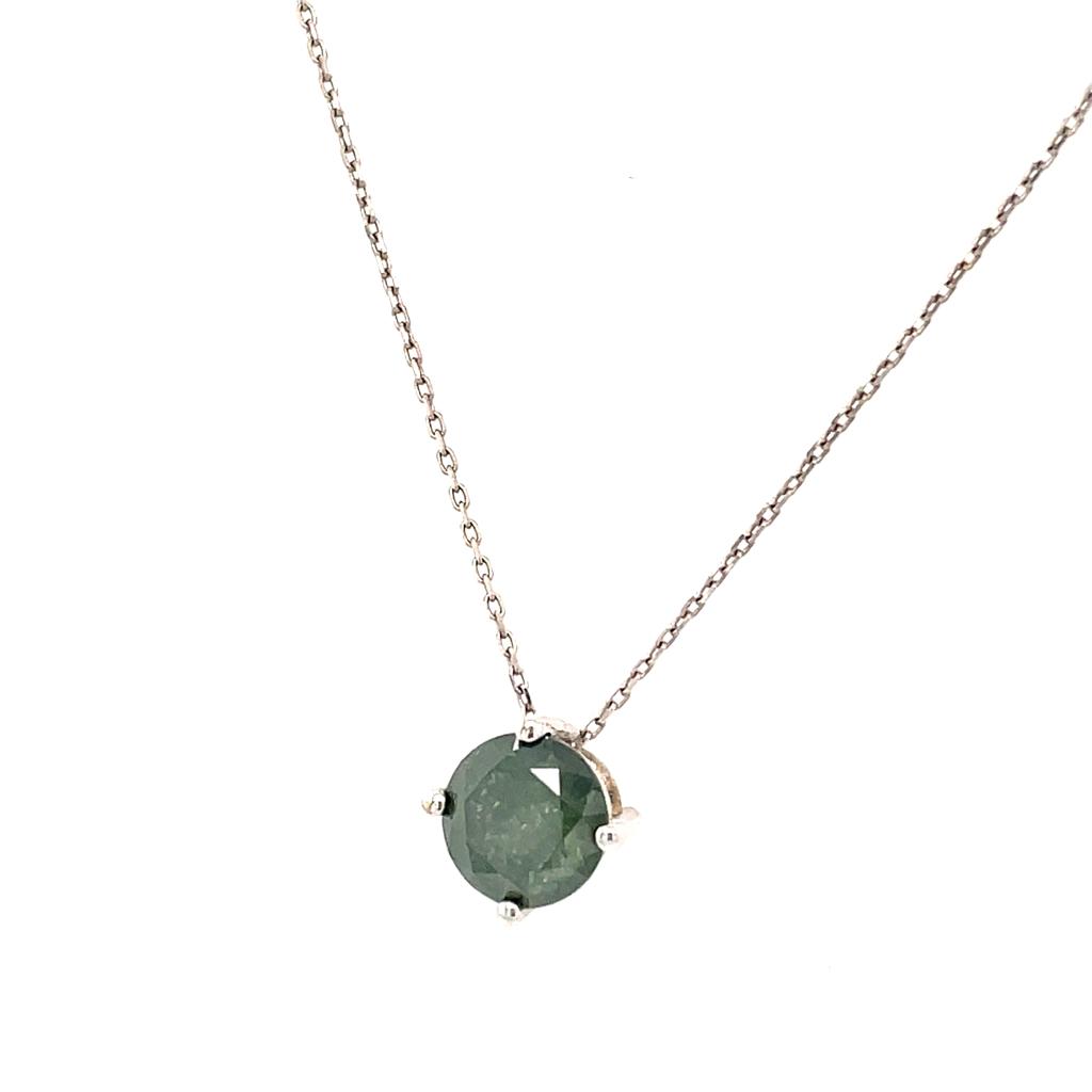 GIROCOLLO IN ORO BIANCO 14K 2.06 GR CIONDOLO CON DIAMANTI PER 1.51 CARATI DEEP GREEN COLORE ESALTATO - PND20411