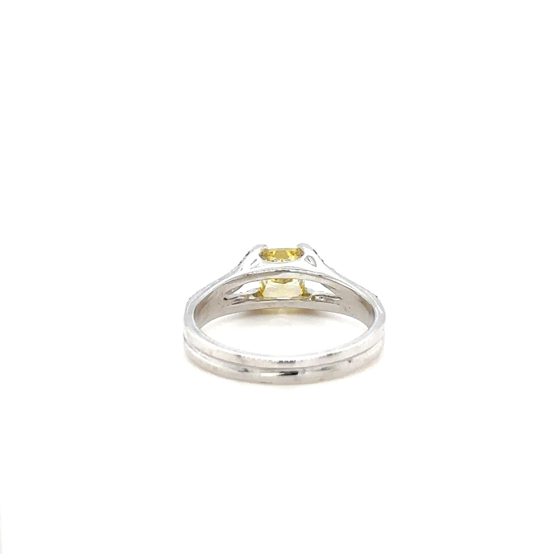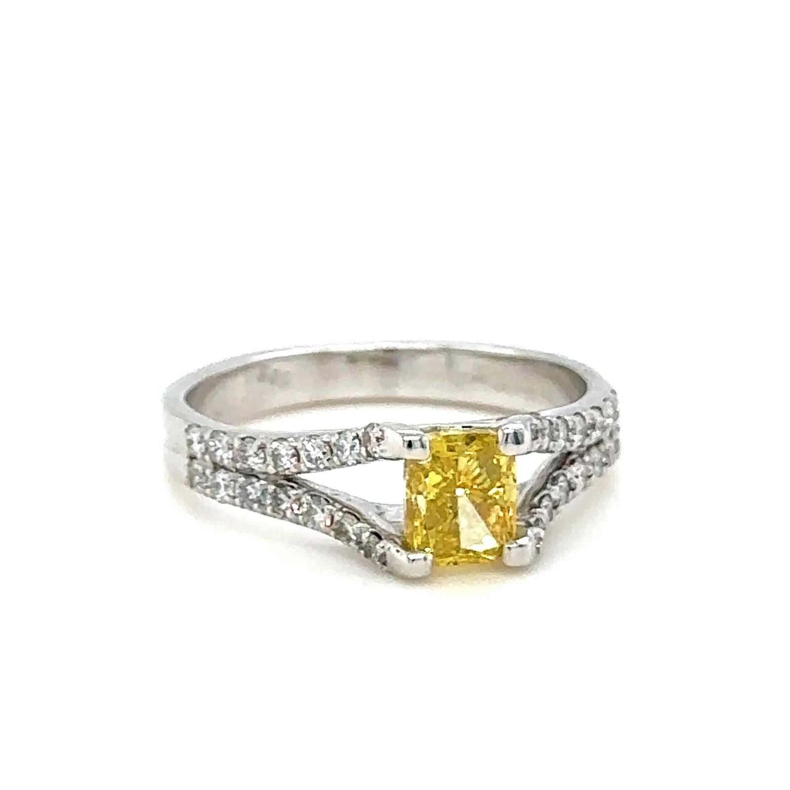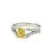 ANELLO IN ORO BIANCO 14K 3.36 GR PIETRA CENTRALE: DIAMANTI PER 1.00 CARATI COLORE FANCY VIVID YELLOW VS1 PIETRE LATERALI: 0.40 CARATI COLORE D-F/ PUREZZA VS1-SI2 TAGLIA 7.5 CERTIFICATO GW – RNG40407