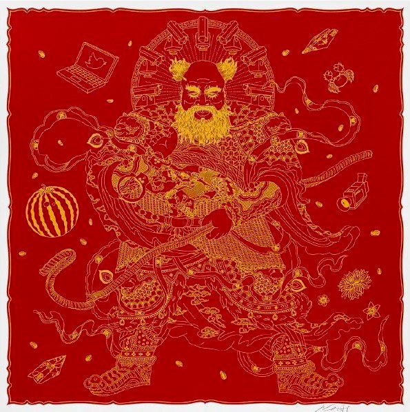 AI WEIWEI Pechino 1957 "Guardian" Serigrafia a due colori cm 60x60, con strato di base glitterato e metallizzato, stampata su carta Somerset Tub Sized Radiant White da 410gr. Edizione di 1601, numerata individualmente e firmata dall'Artista.
