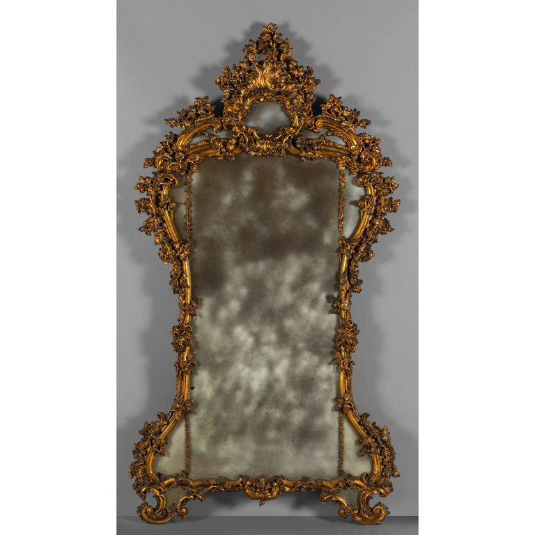 Importante specchiera Luigi XV in legno finemente intagliato e dorato Genova I metà sec.XVIII
