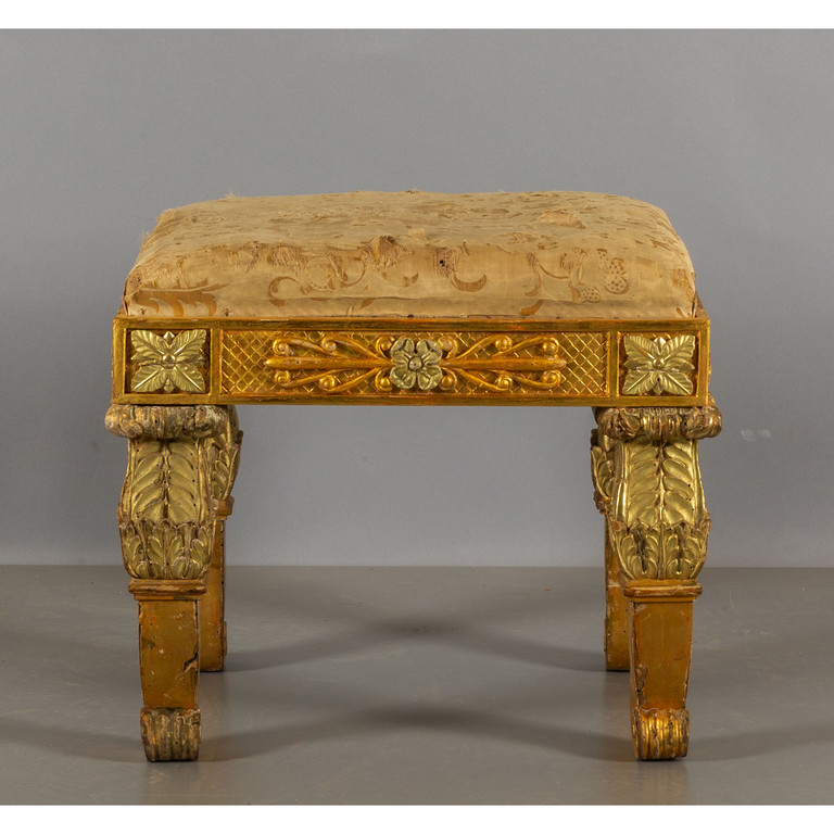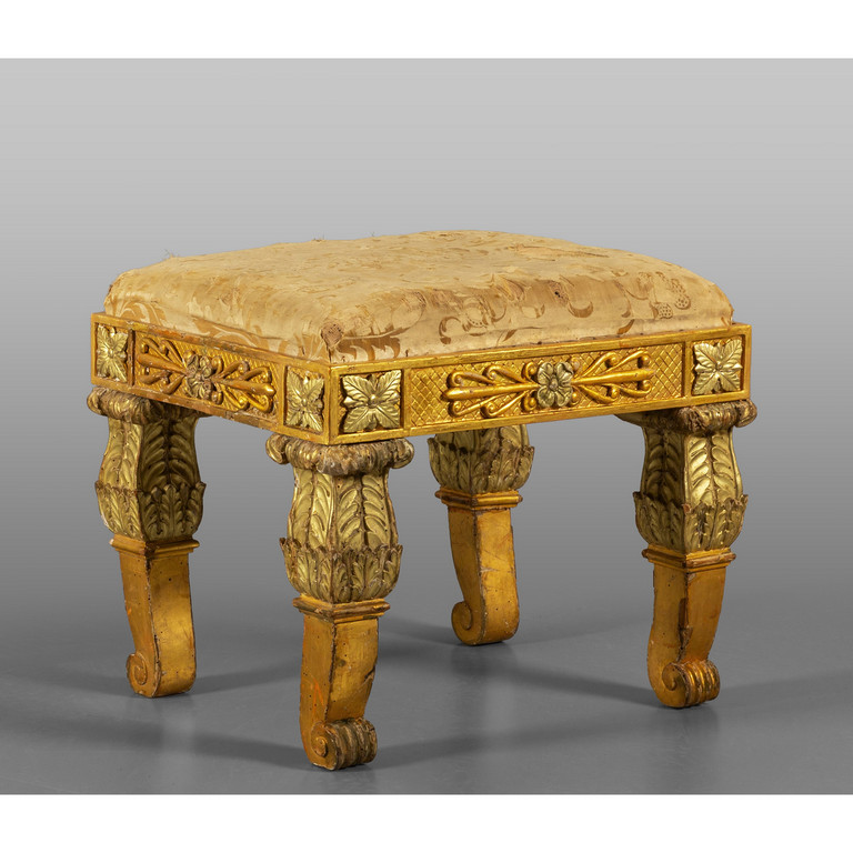 Sgabello Carlo X in legno finemente intagliato e dorato Sicilia I metà sec.XIX