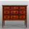 Comò Luigi XVI a tre cassetti lastronato in palissandro e legni esotici piano in marmo bianco e nero d'Aquitania Francia ultimo quarto sec.XVIII
