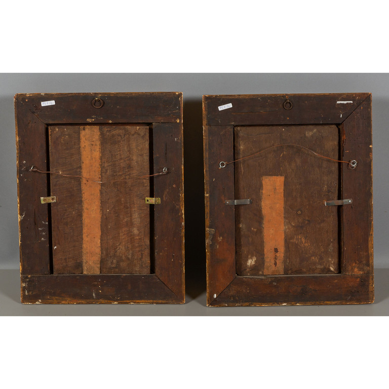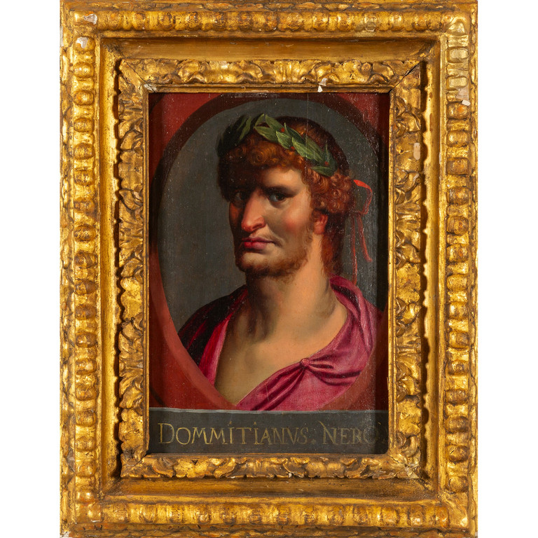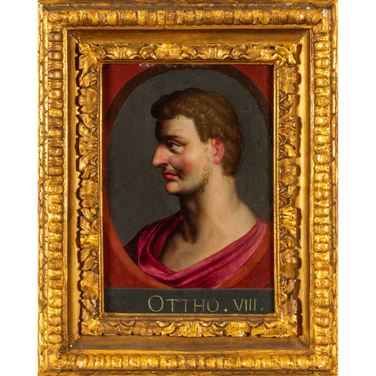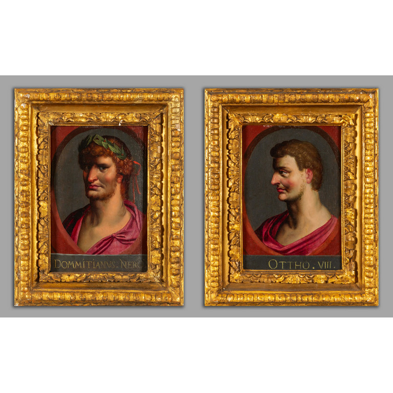 'Imperatori' coppia di olii su tavola cornici in legno intagliato e dorato