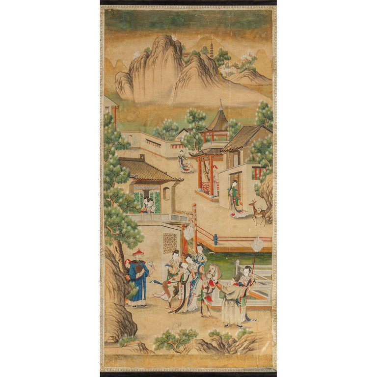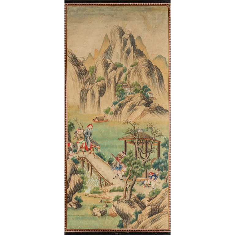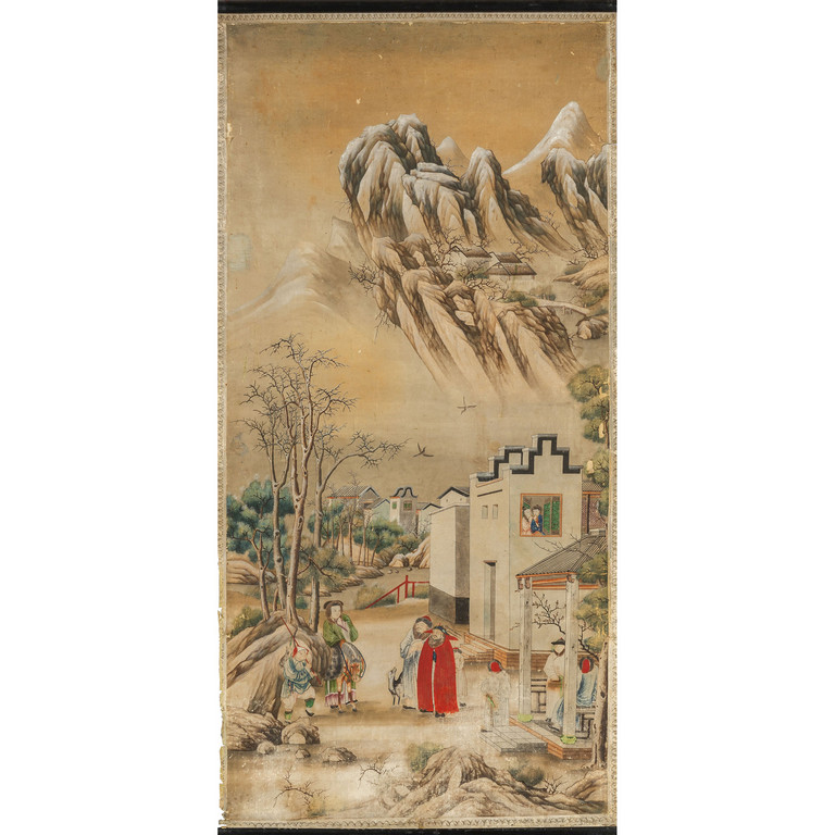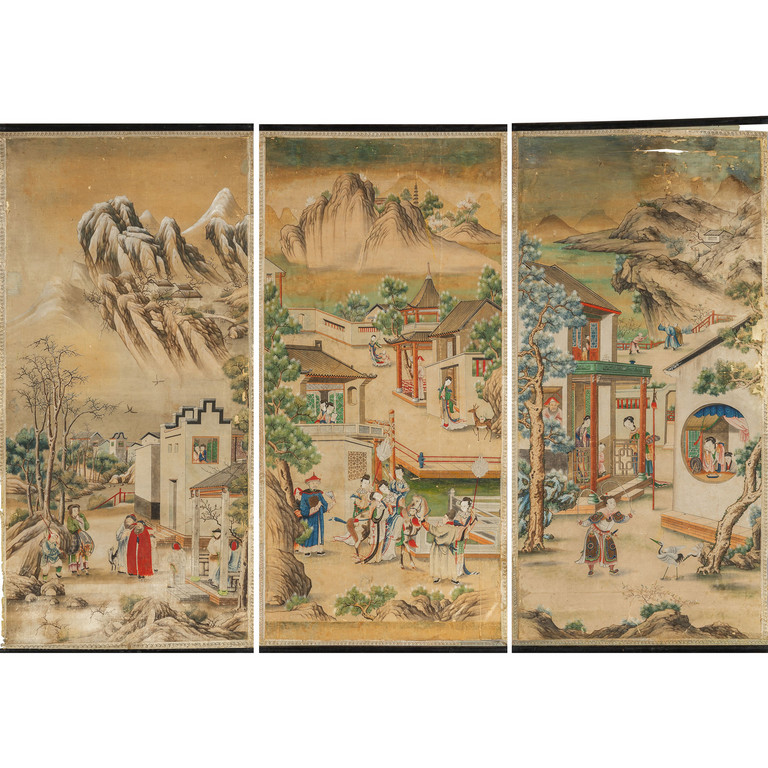 'Paesaggi con scene di vita cinese' tre rotoli dipinti su carta Cina sec.XVIII