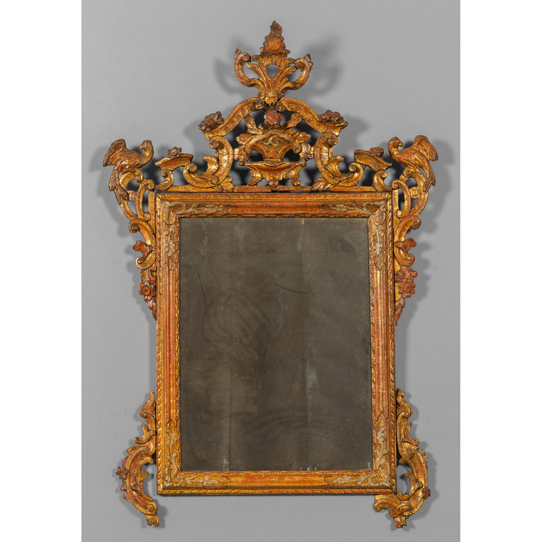 Specchiera Luigi XIV in legno finemente intagliato e dorato Venezia sec.XVIII