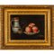Scuola fiamminga sec.XVIII 'Natura morta con brocca e bicchiere in argento' olio cornice coeva in legno intagliato e dorato