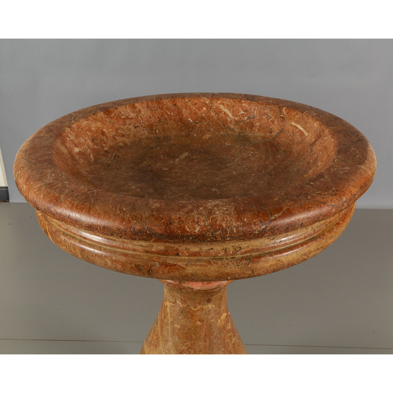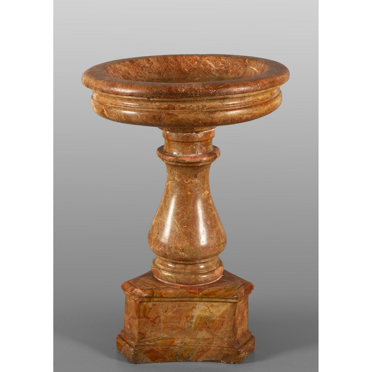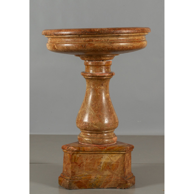 Grande acquasantiera in marmo rosso di Verona base a balaustra poggiante su zoccolo triangolare sec.XVII/XVIII