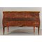Comò a due cassetti movimentato sul fronte e sui fianchi lastronato in legno di rosa e filettato in palissandro con medaglioni ripetuti al centro dei cassetti ed al centro dei due fianchi piano in breccia gialla Napoli I metà sec.XVIII