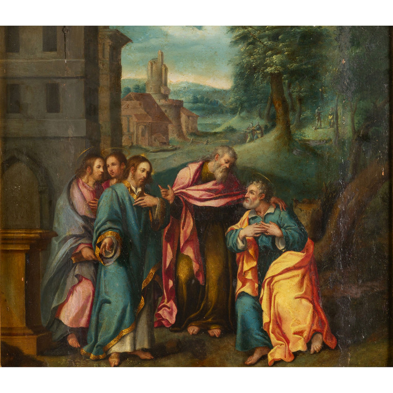 Scuola fiamminga sec.XVIII 'Scena biblica' olio su rame