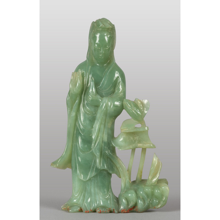 Fanciulla con fiori di loto scultura in giada Cina sec. XX