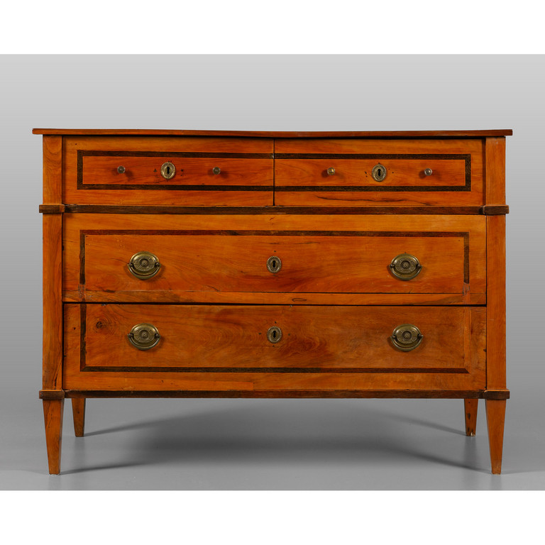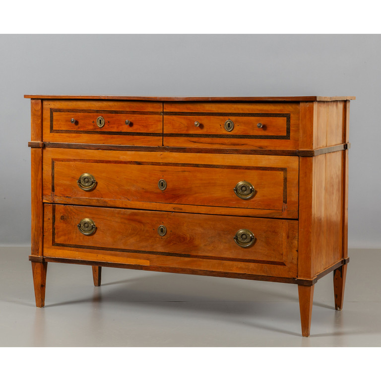 Comò Luigi XVI a due cassetti più due lastronato in ulivo e filettato in palissandro Genova sec.XVIII