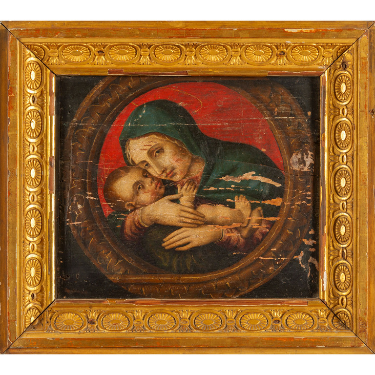 'Madonna con Bambino' olio su tavola sec.XVII bella cornice in legno dorato sec.XVIII