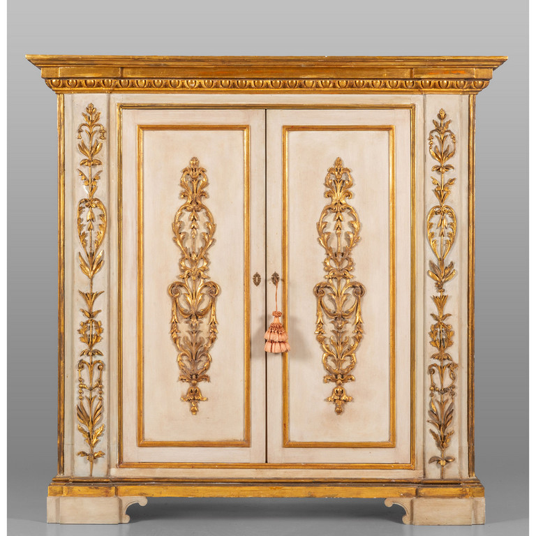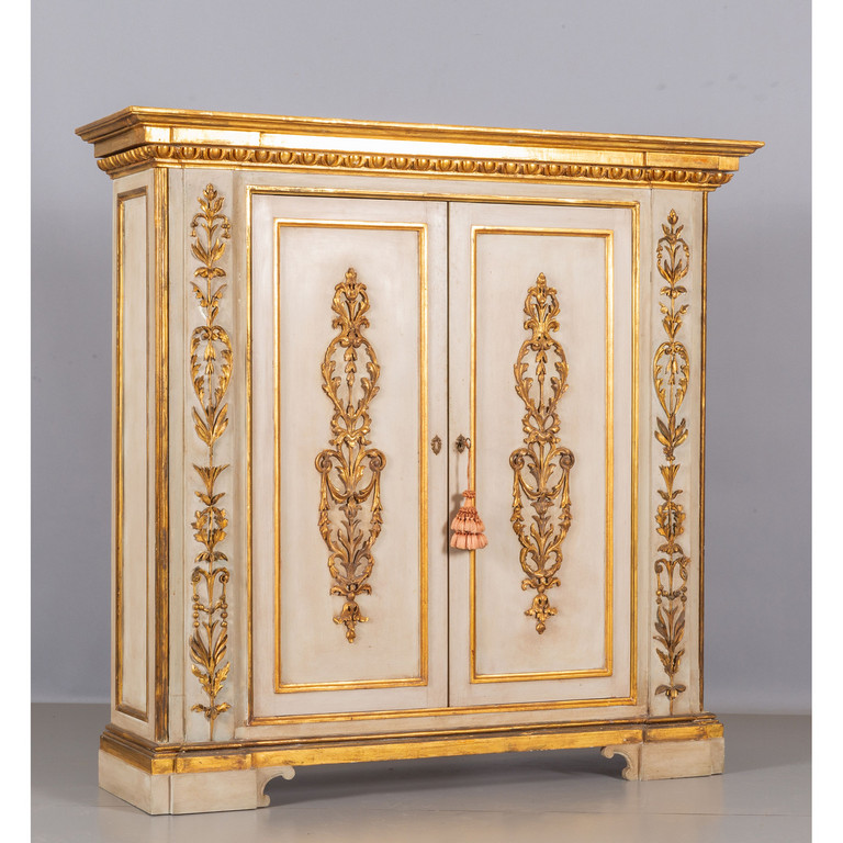Credenza a due sportelli in legno laccato e dorato sec.XIX