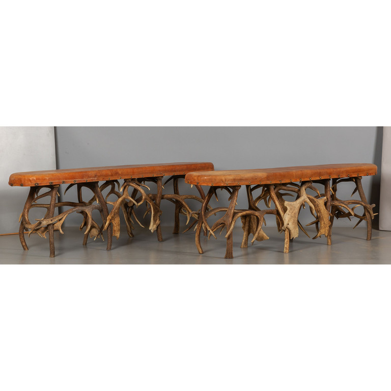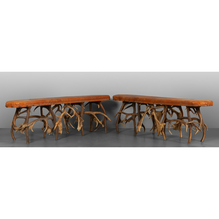 Coppia di panchette formate da corna di cervo inizi sec.XX