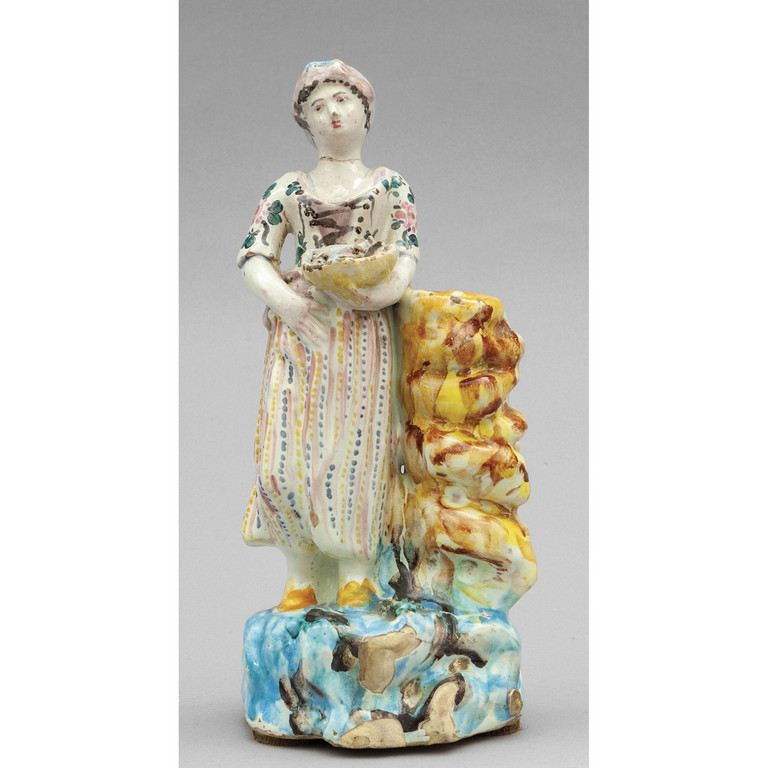 Venditrice di pesce statuina in ceramica policroma Francia fine sec.XVIII