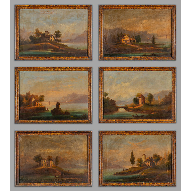 Scuola italiana fine sec.XVIII 'Paesaggi animati' sei olii