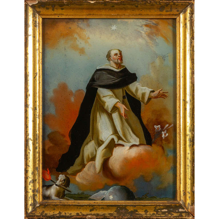 Scuola italiana sec.XVIII 'San Domenico Guzman' olio su vetro