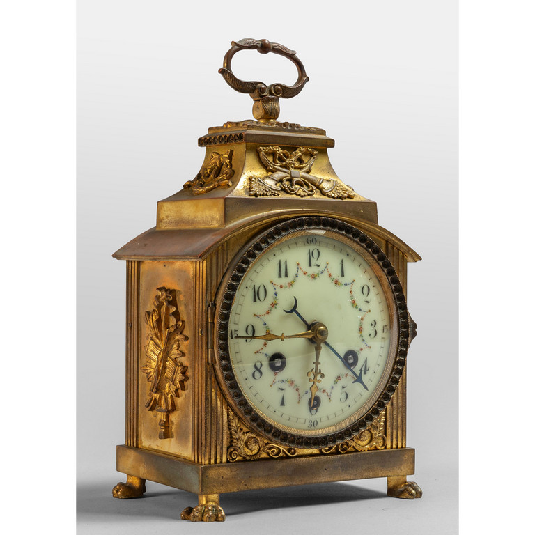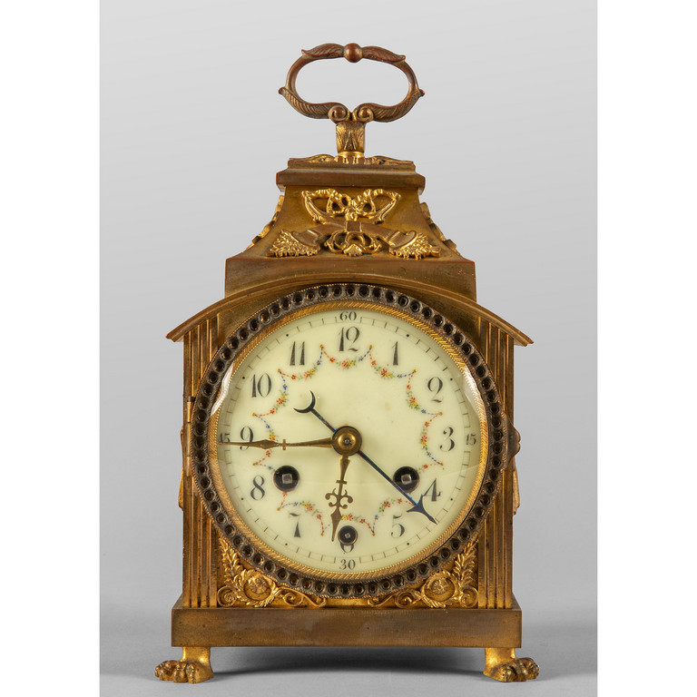 Marescialla in bronzo dorato quadrante in smalto decorato con fiorellini macchina f.ta L.Beccarelli Parma fine sec.XIX