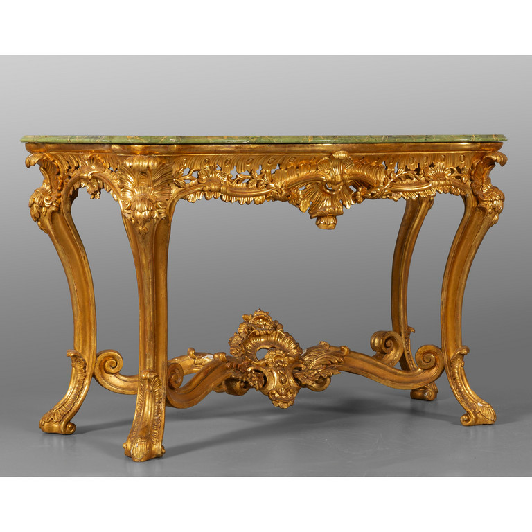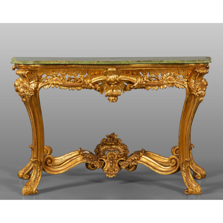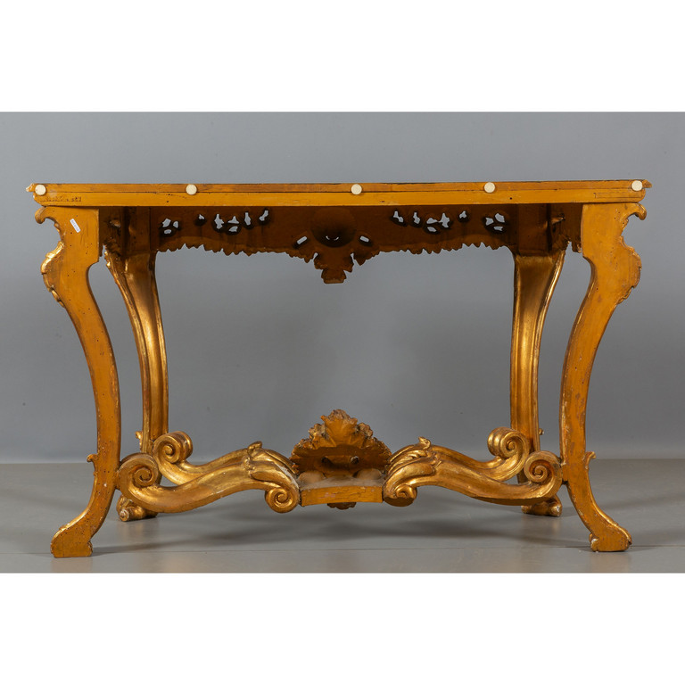 Console Luigi Filippo in legno intagliato e dorato piano laccato a finto marmo sec.XIX