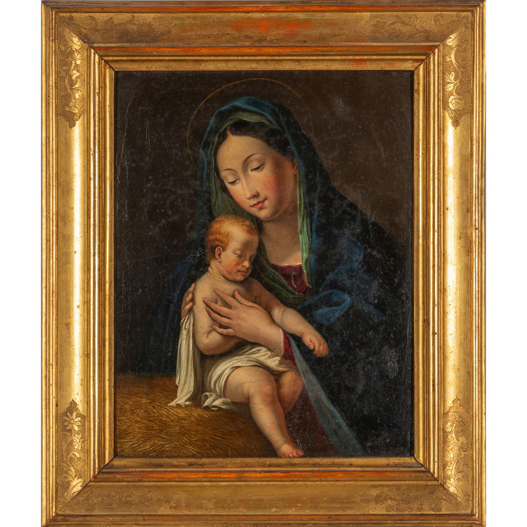 Scuola italiana inizi sec.XIX 'Madonna con Bambino' olio cornice dorata coeva