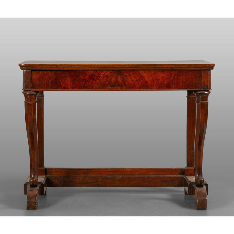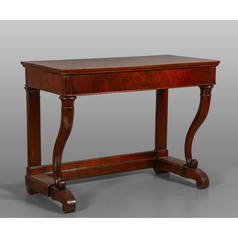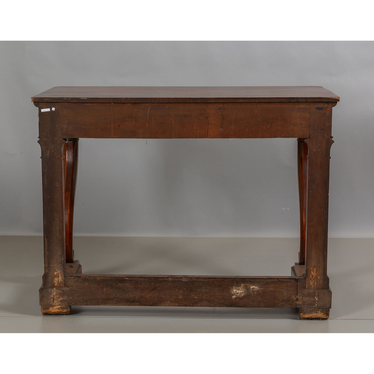 Console Carlo X lastronata in mogano un cassetto sul fronte gambe a cigno Francia I metà sec.XIX