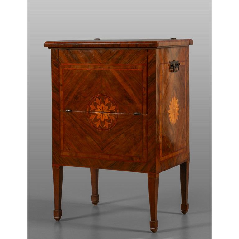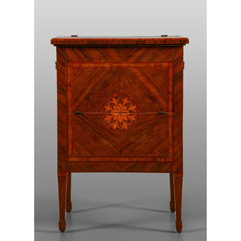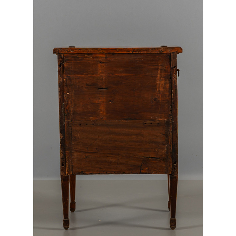 Comoda Luigi XVI lastronata in noce filettata in legni di frutto Lombardia fine sec.XVIII