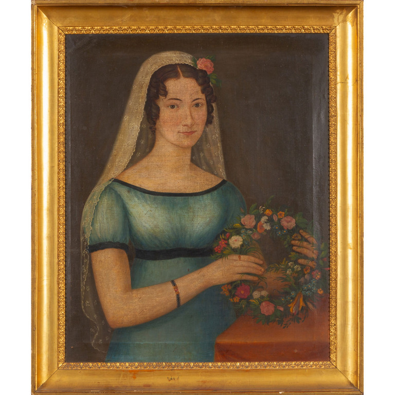 'Fanciulla con coroncina di fiori' olio inizi sec.XIX cornice coeva in legno dorato