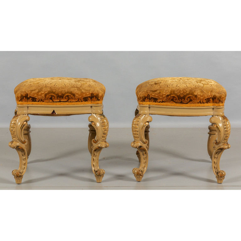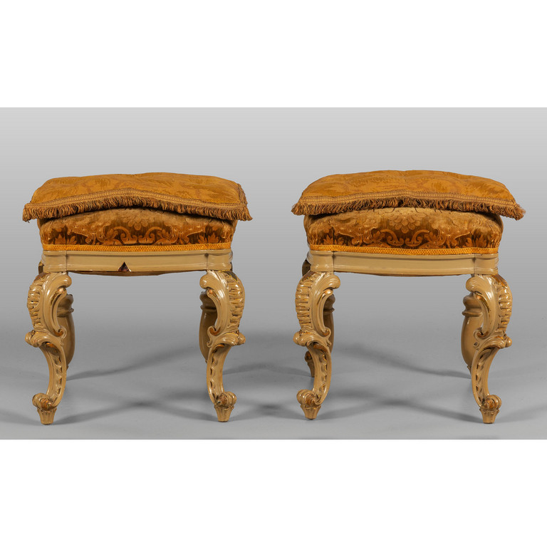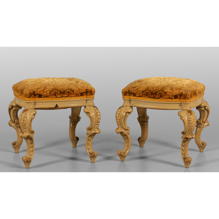 Coppia di sgabelli piemontesi in stile Luigi XIV in legno intagliato e laccato