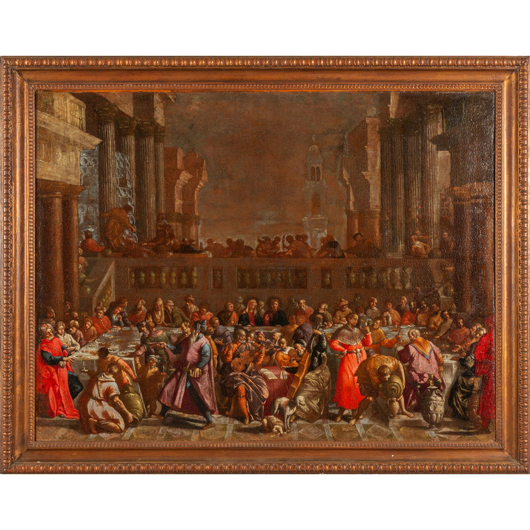 Scuola veneta fine sec.XVII 'Le nozze di Cana' olio