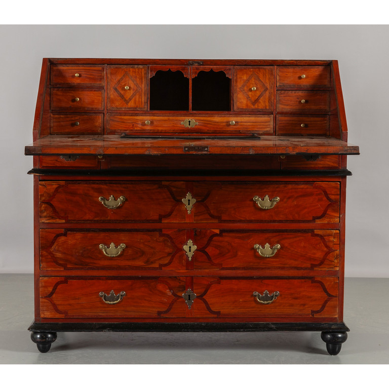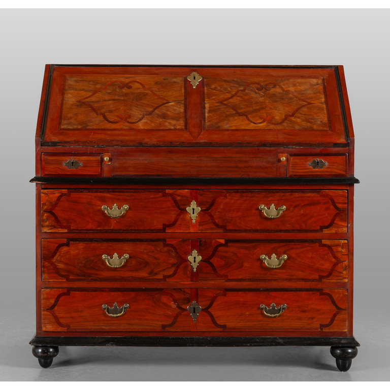 Ribalta Luigi XIV lastronata in ulivo e filettata in palissandro tre cassetti grandi più due piccoli Genova sec.XVIII