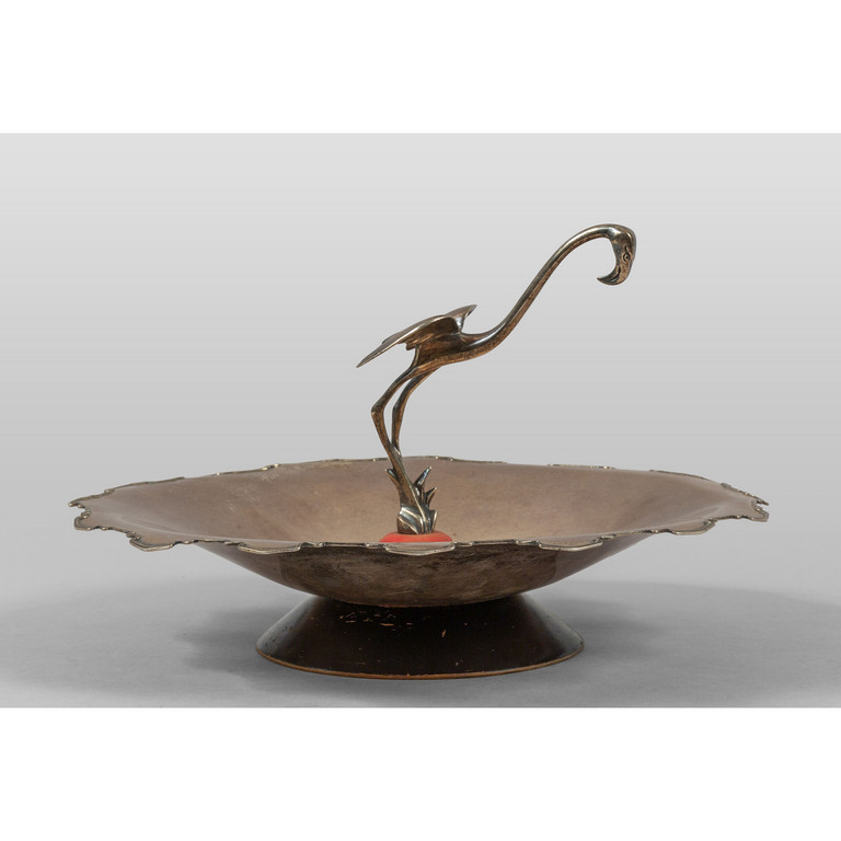 Centrotavola Decò in argento con airone centrale inizi sec.XX