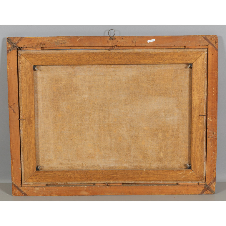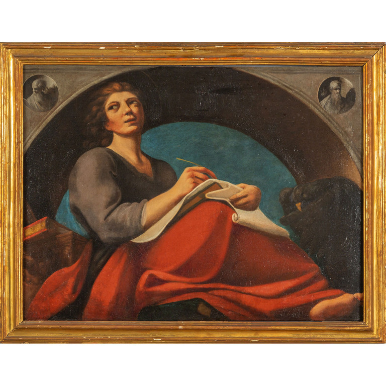 Scuola italiana sec.XVIII 'San Giovanni Evangelista' olio cornice coeva a sagoma romana in legno intagliato e dorato