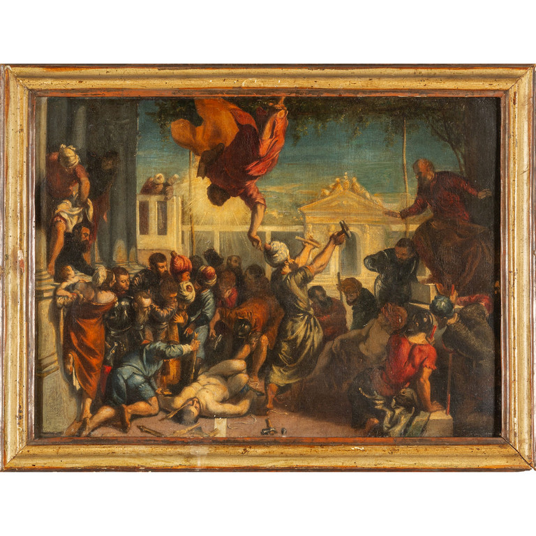 Scuola veneta sec.XVIII 'Il miracolo di Simon Pietro' olio