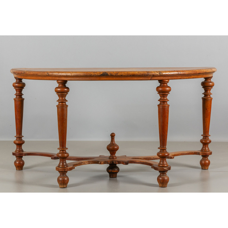 Coppia di mezzi tavoli Luigi XIV a quattro gambe a bottiglia unite da traversa Genova inizi sec.XVIII