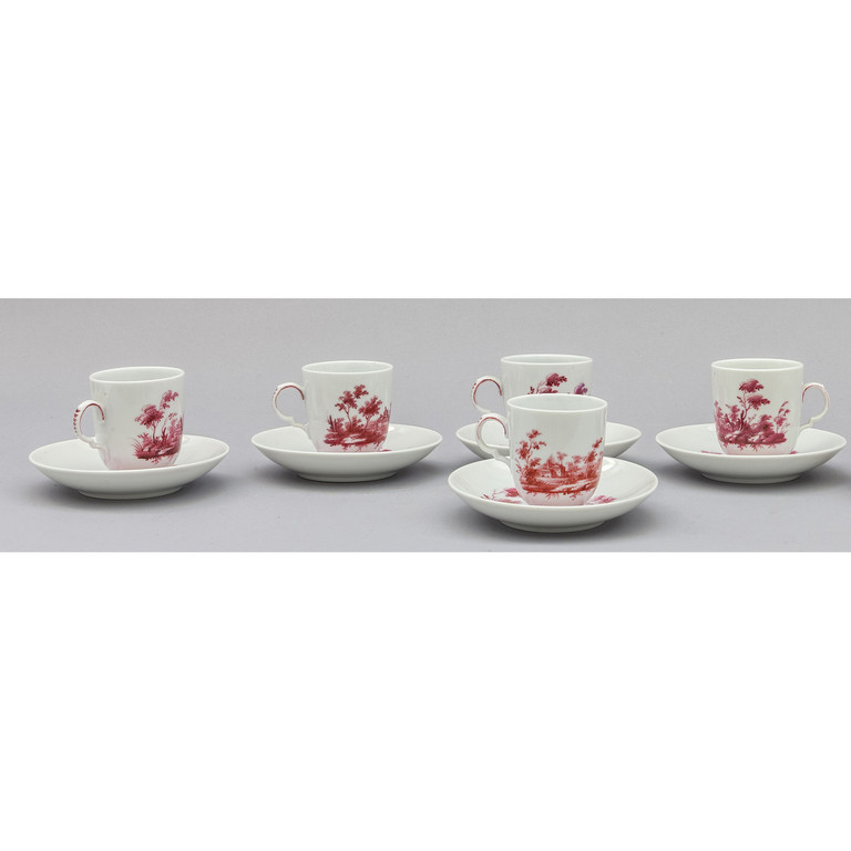 Cinque tazzine da caffè in porcellana Ginori decorazione a sanguigna raffigurante paesaggi sec.XVIII