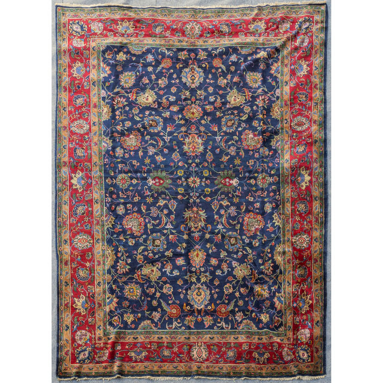 Tappeto persiano a fondo blu con fiori