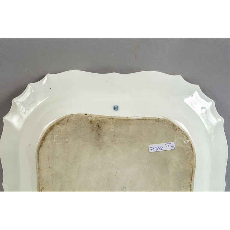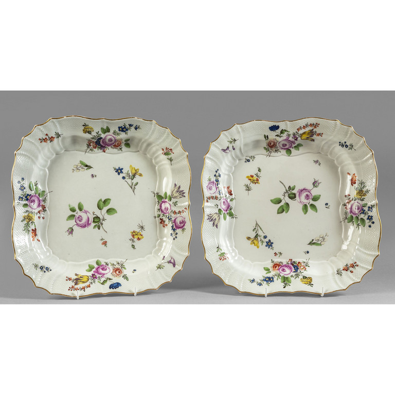 Coppia di risottiere di forma quadrata di porcellana bianca decorata in policromia a fiori sec.XVIII