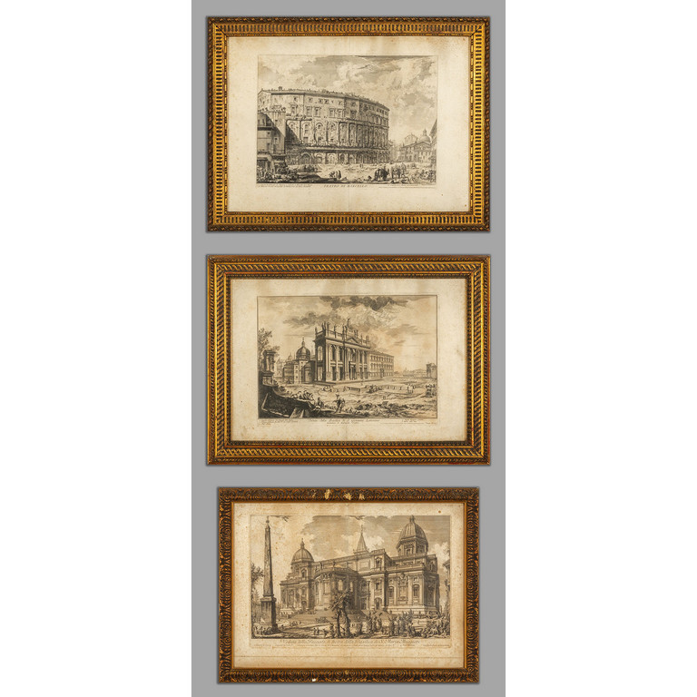 Tre incisioni raffiguranti veduta della facciata del retro della Basilica di Santa Maria Maggiore (cm.60x37) veduta della Basilica di San Giovanni in Leterano e veduta del Teatro Marcello (ognuna cm.55x39)