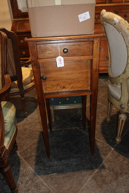 Precedente Lotto 1080 Successivo Aste Boetto - Via Mura dello Zerbino 10R, 16122 Genova ASTA DI ANTIQUARIATO, ARGENTI DEL SEC.XX E TAPPET ASTA DI ANTIQUARIATO, ARGENTI DEL SEC.XX E TAPPETI giovedì 3 ottobre 2024 ore 15:00 (UTC +01:00) MOBILE Comodino rustico in massellocm. 38x35 h. 83